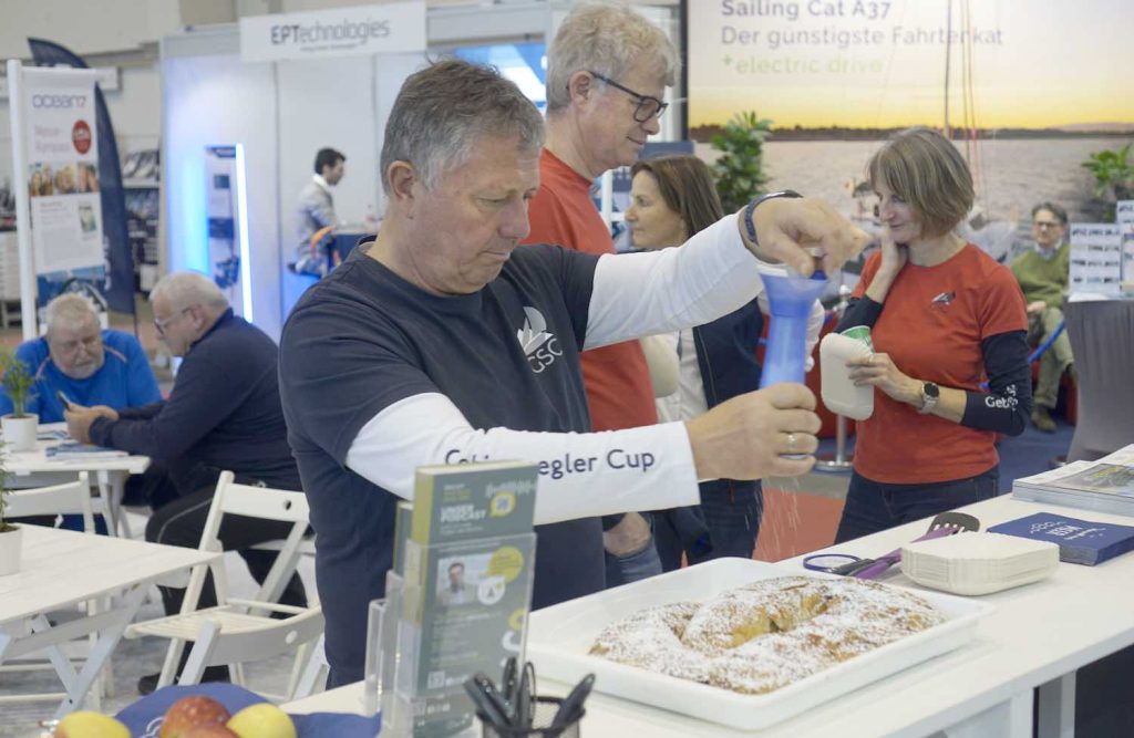 Am Sonntag durften wir Mike Hecker, YCA-Commander der Crew Steiermark, und seine Frau Heidi Hecker, eine erfahrene Blindenbetreuerin, auf unserem Stand begrüßen. Mit dabei war auch die Blinde Karin, die 2025 an Bord des Seglerpaares am Segel-Event Feel the Sea teilgenommen hatte. Nun galt es, sich bei der Infoveranstaltung mit interessierten Skippern auszutauschen und für die zweite Auflage des gemeinnützigen Segel-Events für Blinde mit ins Boot zu holen. Die Begeisterung war groß – nicht zuletzt auch wegen des von Karin gebackenen steirischen Apfelstrudels!